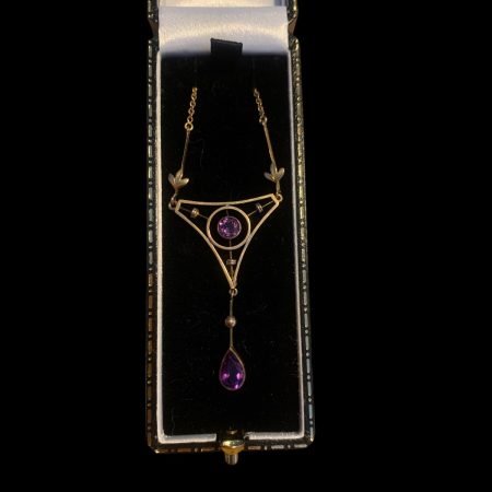 Edwardian 9ct Gold and Amethyst Drop Pendant