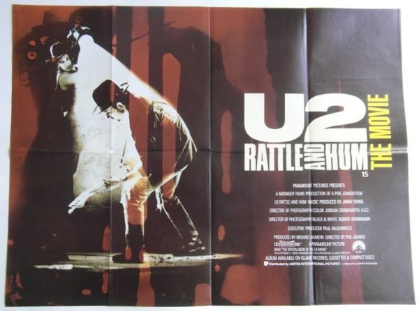Original British UK Quad for the U2 rockumentary film directed by Phil Joanou. The film accompanied the bands sixth studio album by the same name. Both were released in 1988.