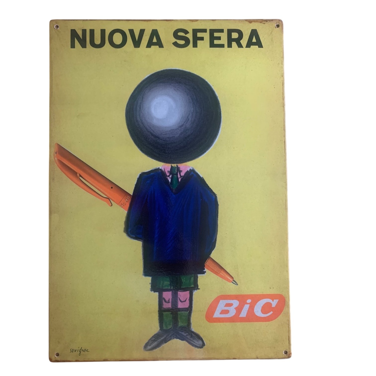 Vintage Italian Bic ball point pen surreal advertising sign by celebrated artist Raymond Savignac.