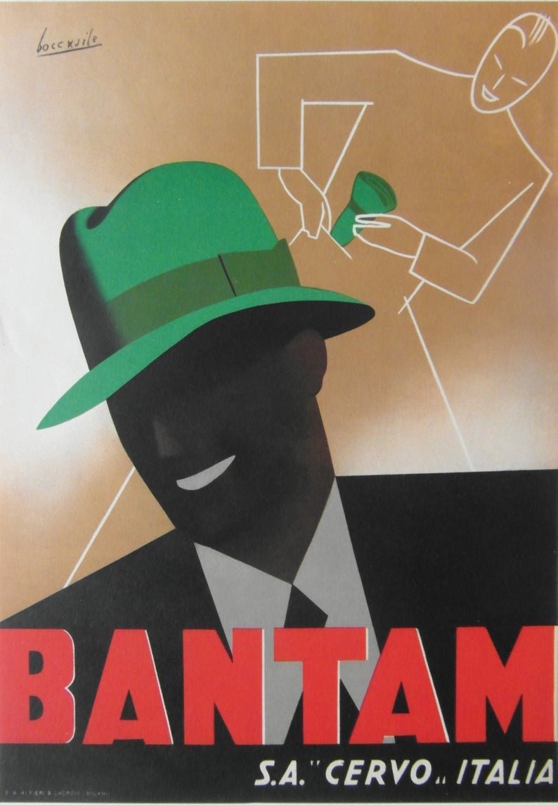 Original 1930s Art Deco Small Format Italian Advertising Poster for Bantam Hats