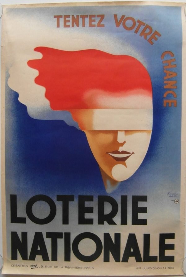 Original 1937 art deco French national lottery poster entitled ‘Try Your Luck.