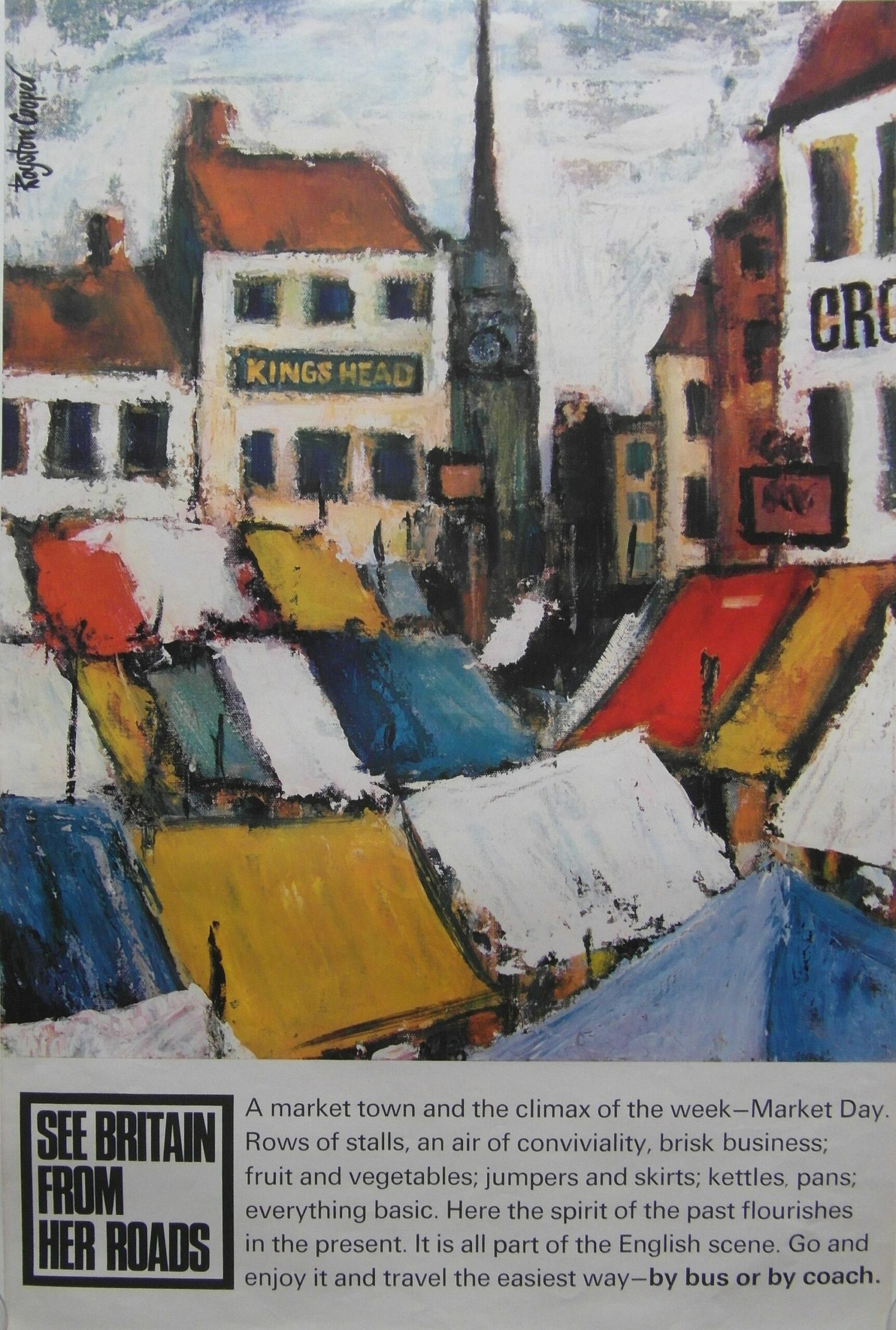 Artwork of market scene by celebrated British artist Royston Cooper. Royston Cooper 1931-1985 designed for large International & National companies & won major design awards between 1957 -1980.