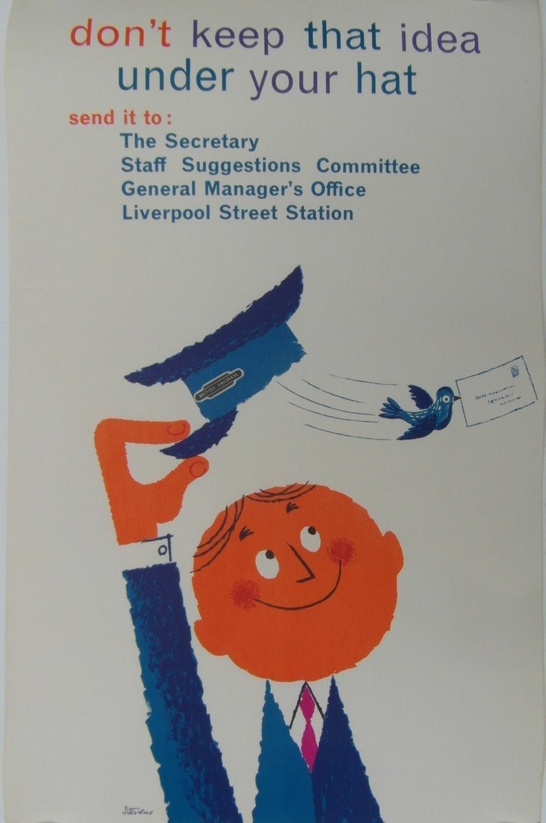 Original 1970s London Transport poster by renowned poster artist Harry Stevens inviting ideas from members of the public to improve the service.