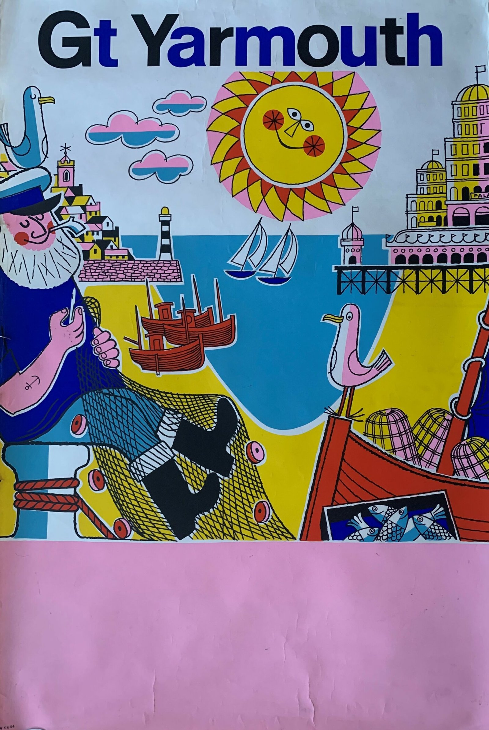 Original 1970s poster promoting the seaside town of Great Yarmouth by renowned British poster artist Harry Stevens. Harry Stevens, was born in Manchester in 1919 and died in 2008. He designed posters for London Transport between 1960-1978 as well as other travel companies. Harrys Steven’s work has become very collectible in recent years. Signed in the plate- bottom left corner.