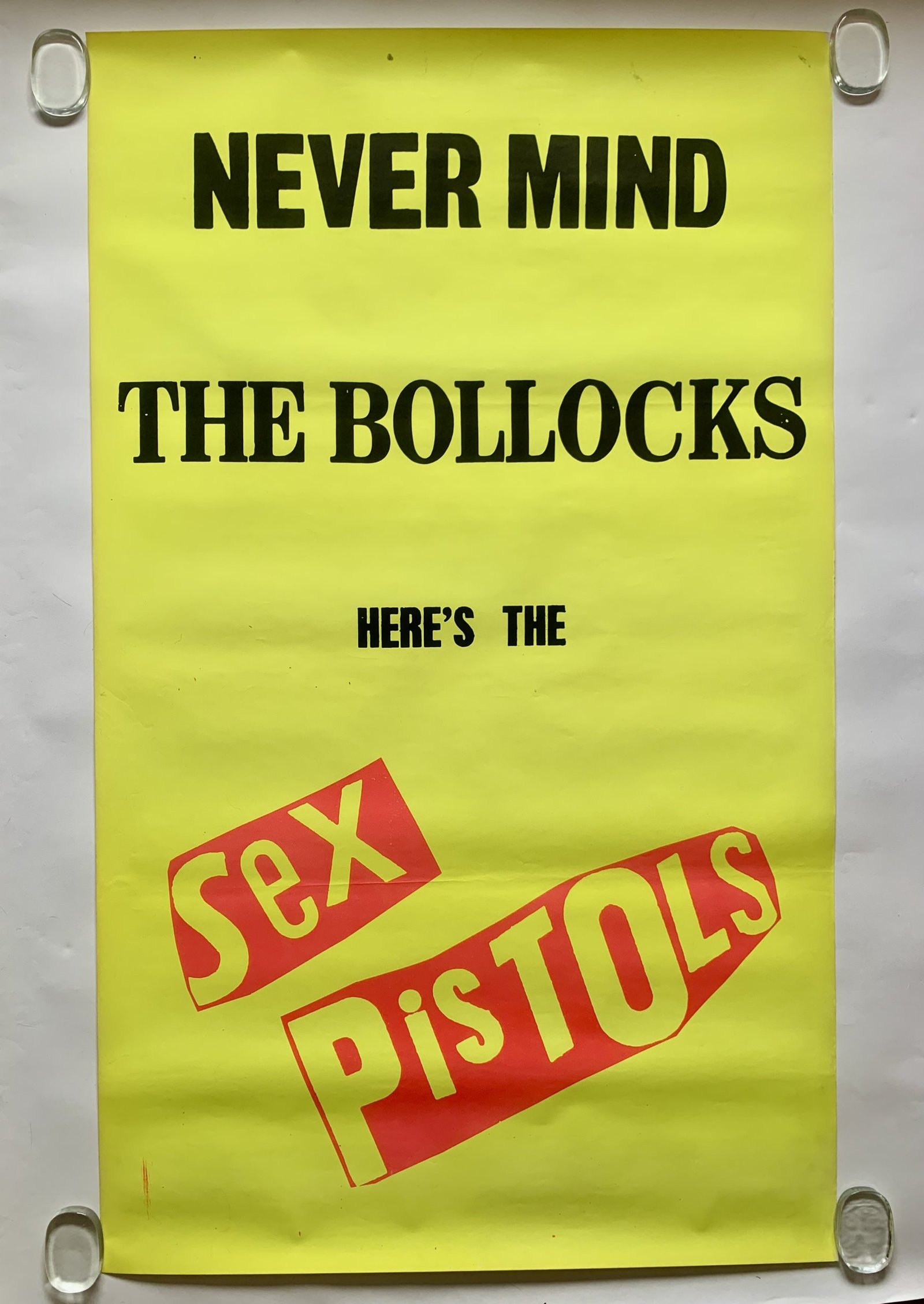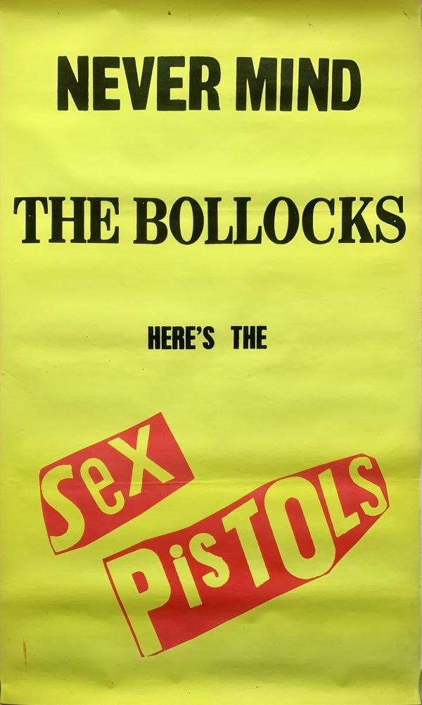 Original 1977 Sex Pistols ‘Never Mind the Bollocks ..’ large silkscreen billboard poster. NMTB is the only studio album by the Sex Pistols.