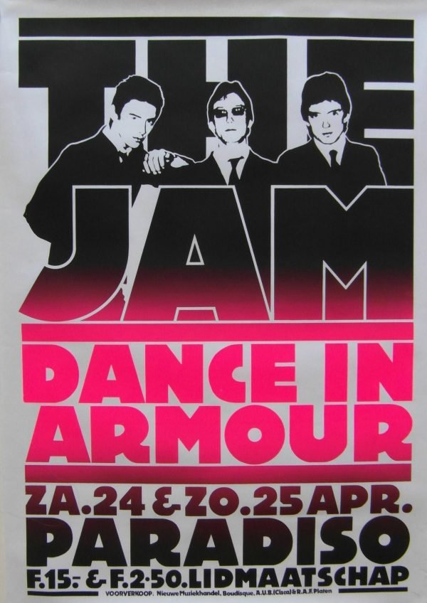 Original The Jam silkscreen poster for a gig at the Paradiso Club, Amsterdam on the 24/25 April 1982