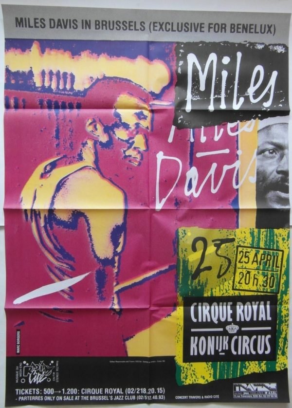 Original 1983 Miles Davis Belgium concert poster.