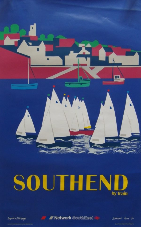 Original 1989 silkscreen South East rail poster promoting rail travel to Southend.
