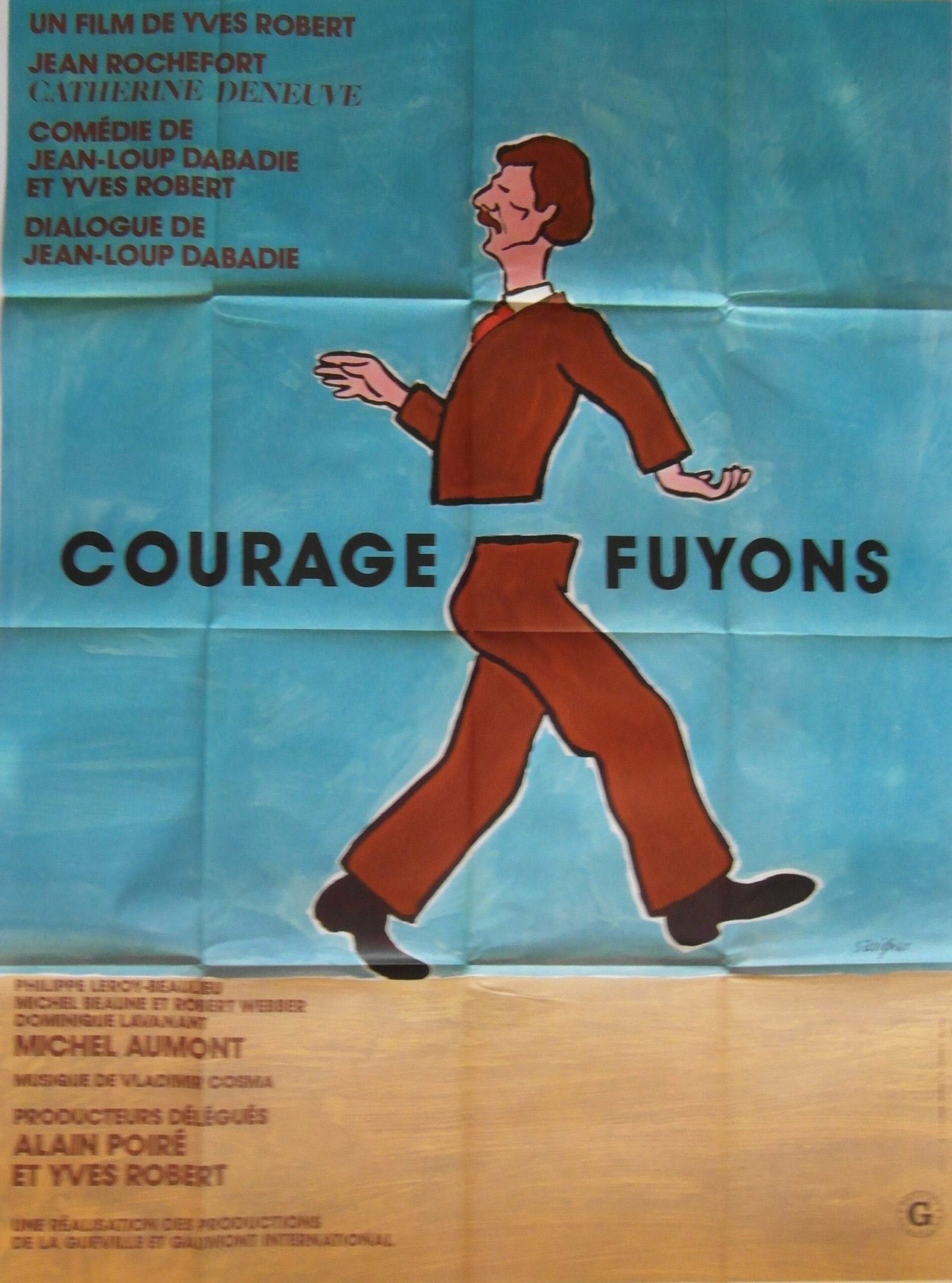 Original 1979 French grande poster for the film ‘Courage Fuyons’. The film tells the story of Martin Bellhome who leads a predictable life with his wife and two children. One day, he falls hopelessly in love with Eva, a cabaret singer, and decides to follow her to Amsterdam where his life becomes a lot more eventful. Artwork for the poster is by celebrated French poster artist Raymond Savignac.