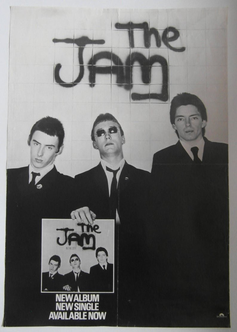 Original The Jam promotional poster for their debut album ‘In the City’ released by Polydor in 1977. The album featured the hit single and title track ‘In the City’. A very rare piece of punk memorabilia.