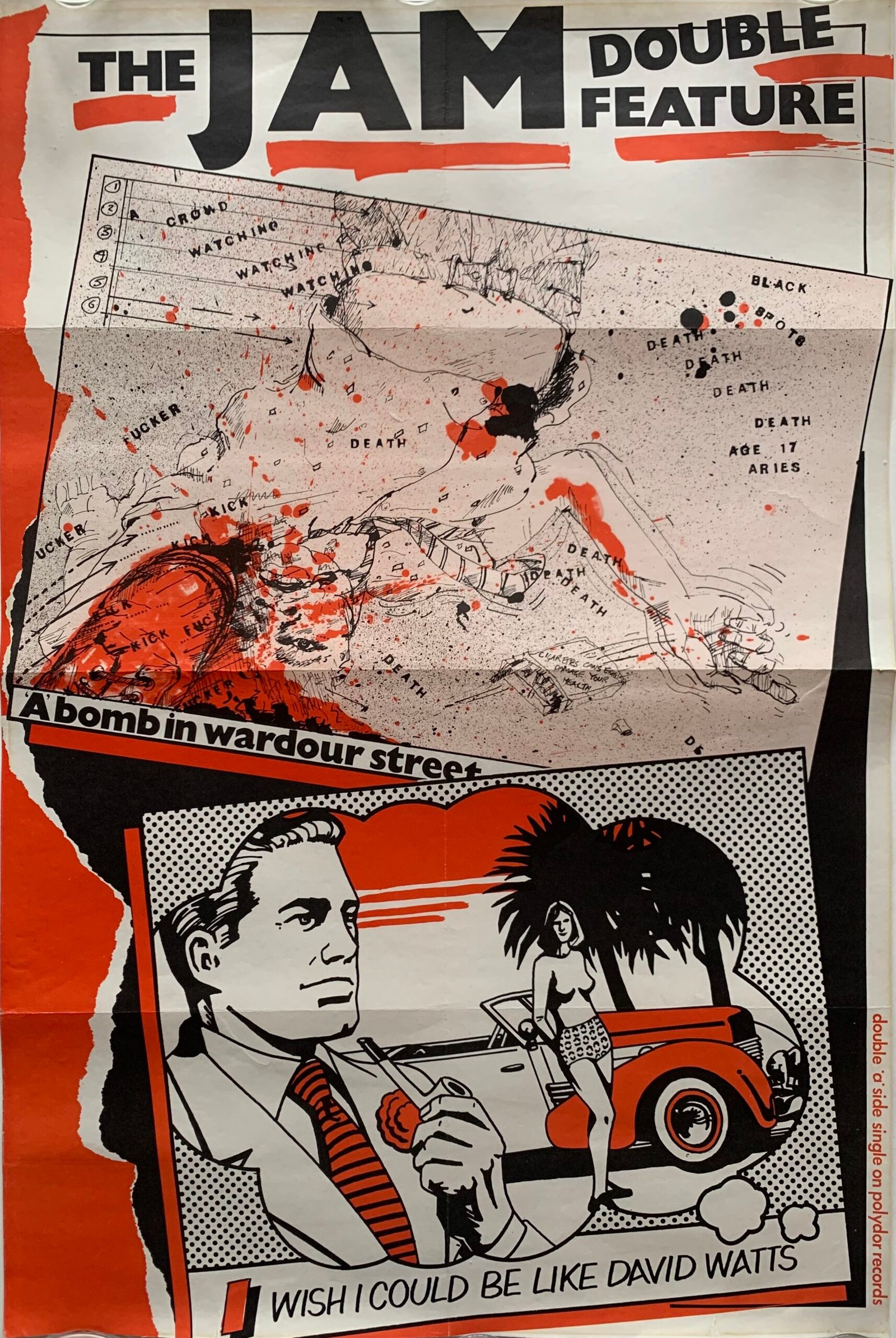 Rare original The Jam promotional poster for the double A side single ‘David Watts’ and ‘A Bomb in Wardour Street’ released in 1978.