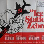 1968 scarce first release UK quad poster for the military film ‘Ice Station Zebra’. Great cold war graphics economically illustrating the central themes of the movie.