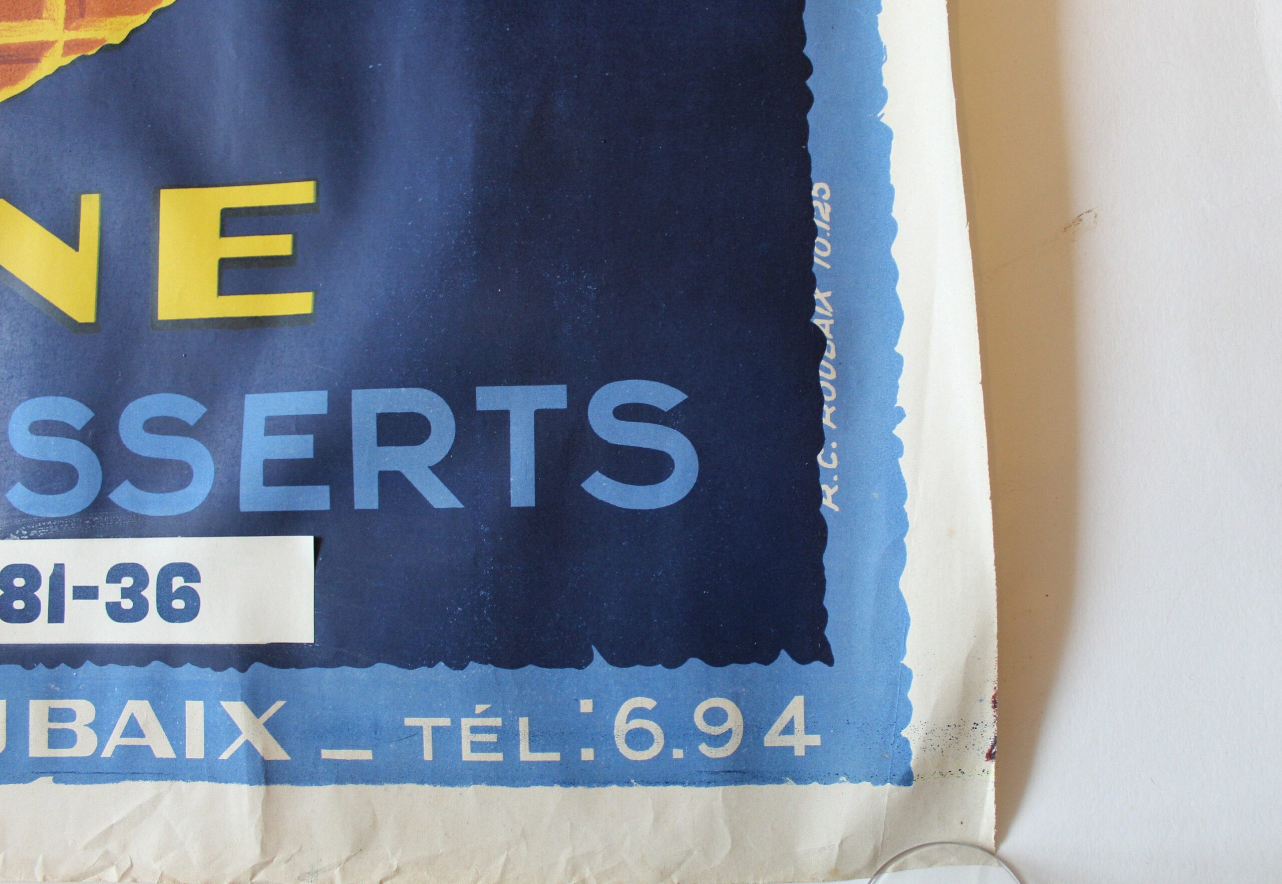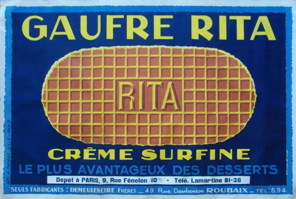 Original 1925 large French advertising poster for Gaufre Rita, a brand of waffles.