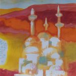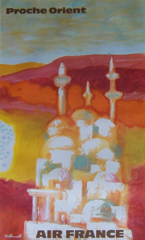 Original 1967 Air France poster promoting travel to the Orient. Artwork by celebrated french artist Bernard Villemot