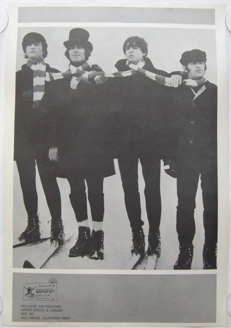 1967 Swedish in-store double sided Beatles display poster. The poster was part of a poster pack published by KONST- Sweden (Svenska) and distributed by Exclusive Distributors of Hollywood, California. On the back of the poster is a black and white photograph of the artists. Printed on heavy stock paper.