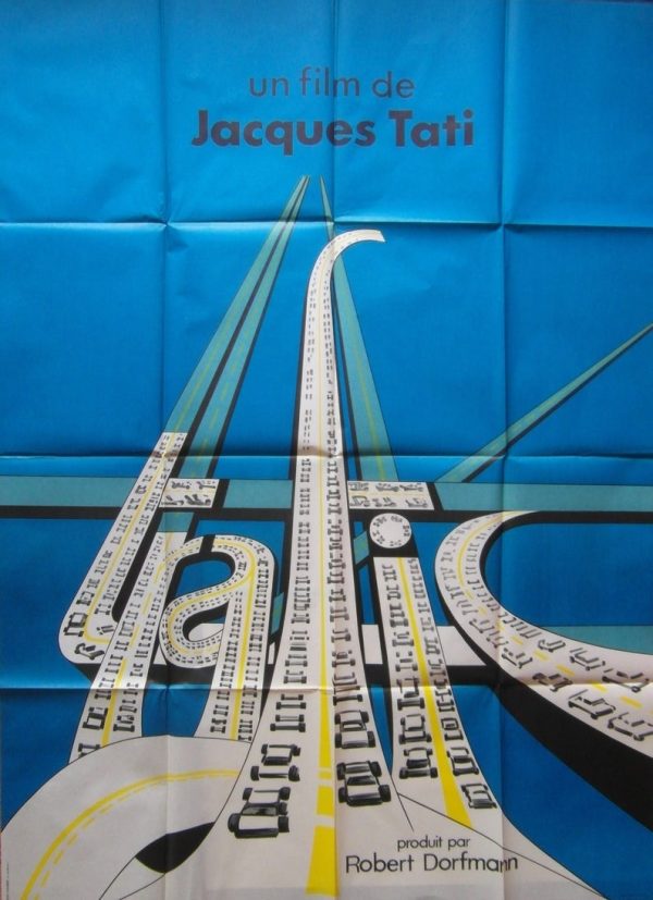 Original 1971 grande country of origin movie poster to promote the French comedy classic ‘Traffic’ by Jacques Tati