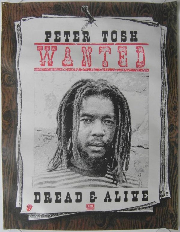 Original 1981 Peter Tosh EMI USA/Rolling Stones Records poster for the tour ‘Wanted Dread or Alive’.