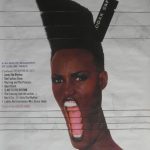 Original subway Grace Jones promotional poster for the Album ‘Slave to the Rhythm’ released on 28th October 1985 on Island Records. The art work, designed by Jean Paul Goude, is a montage of several copies of a single photograph of Grace, that makes her hair look extended and her mouth look stretched. Subway posters were produced by the record companies in limited runs and as such are rare.