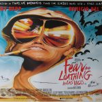 Original UK quad poster for the film ‘Fear and Loathing in Las Vegas’, adpated from Hunter S Thompson’s 1971 novel of the same name. It was co-written and directed by Terry Gilliam, and stars Johnny Depp and Benicio del Toro as Raoul Duke and Dr. Gonzo, respectively. The film details the duo’s journey through Las Vegas as their initial journalistic intentions devolve into an exploration of the city under the influence of psychoactive substances.